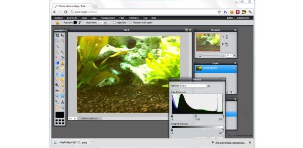 Pixlr Editor is meer vergelijkbaar met Photoshop Elements. Het is Nederlandstalig en doet totaal niet onder voor professionele tools. Foto's zijn na registratie te delen via Facebook, Flickr en Picasa. Ook is er een functie om ze ook op Google Drive of uw eigen harde schijf op te slaan.