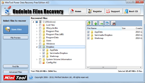 MiniTool Power Data Recovery haalt (per ongeluk) verwijderde bestanden terug.