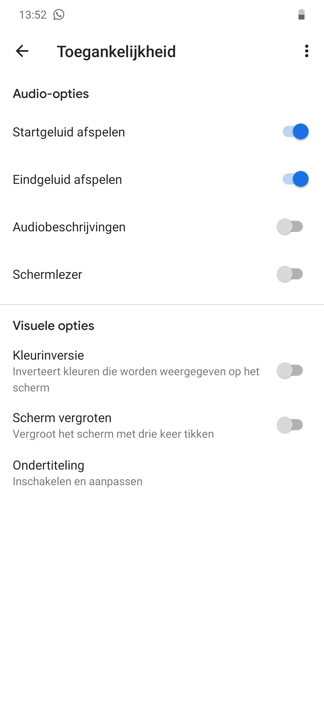 Je vindt de opties onder de instellingen van de slimme speaker of smart display. Onder het kopje toegankelijkheid tref je de opties Startgeluid en Eindgeluid aan. Rechts daarvan zijn de schuifregelaars waarmee je de functies activeert en ook weer deactiveert.