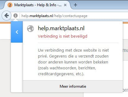 Wanneer je gebruik wilt maken van Marktplaats kun je niet anders dan de cookies accepteren. Voor meer informatie over het cookiebeleid geeft Marktplaats websitebezoekers de mogelijkheid op een link te klikken voor meer informatie. Met het volgen van deze link worden er onmiddellijk trackingcookies op je computer geplaatst door onder andere Googles DoubleClick en Facebook Connect. Hier heb je als websitebezoeker helemaal geen toestemming voor gegeven.