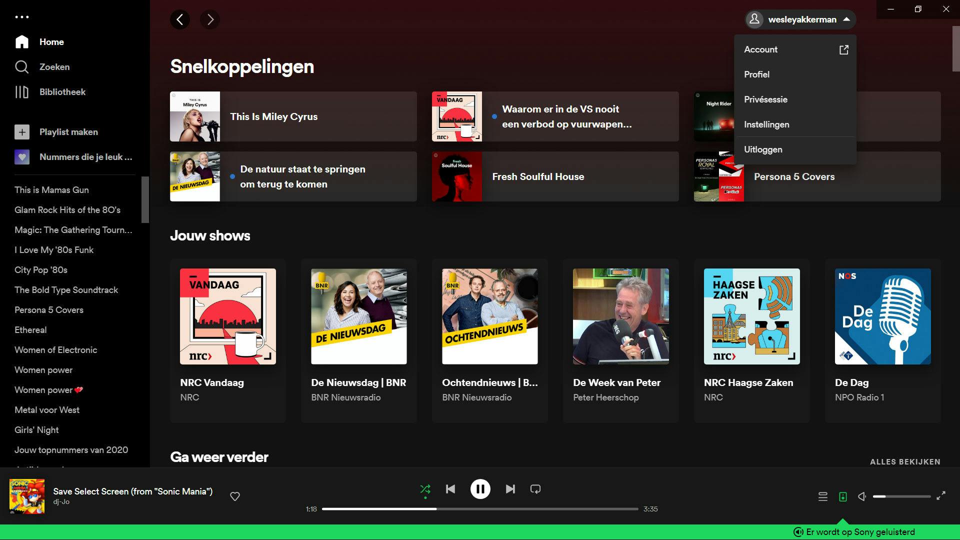 Is dat het probleem niet en helpen de andere twee oplossingen ook niet, dan kun je opnieuw inloggen. Open de app op Windows en klik rechts bovenin op je naam. Selecteer vervolgens de onderste optie Uitloggen om uit te loggen bij Spotify. Vervolgens kun je opnieuw inloggen bij de dienst met je bestaande account, nadat je de app een keertje opnieuw opstartte.