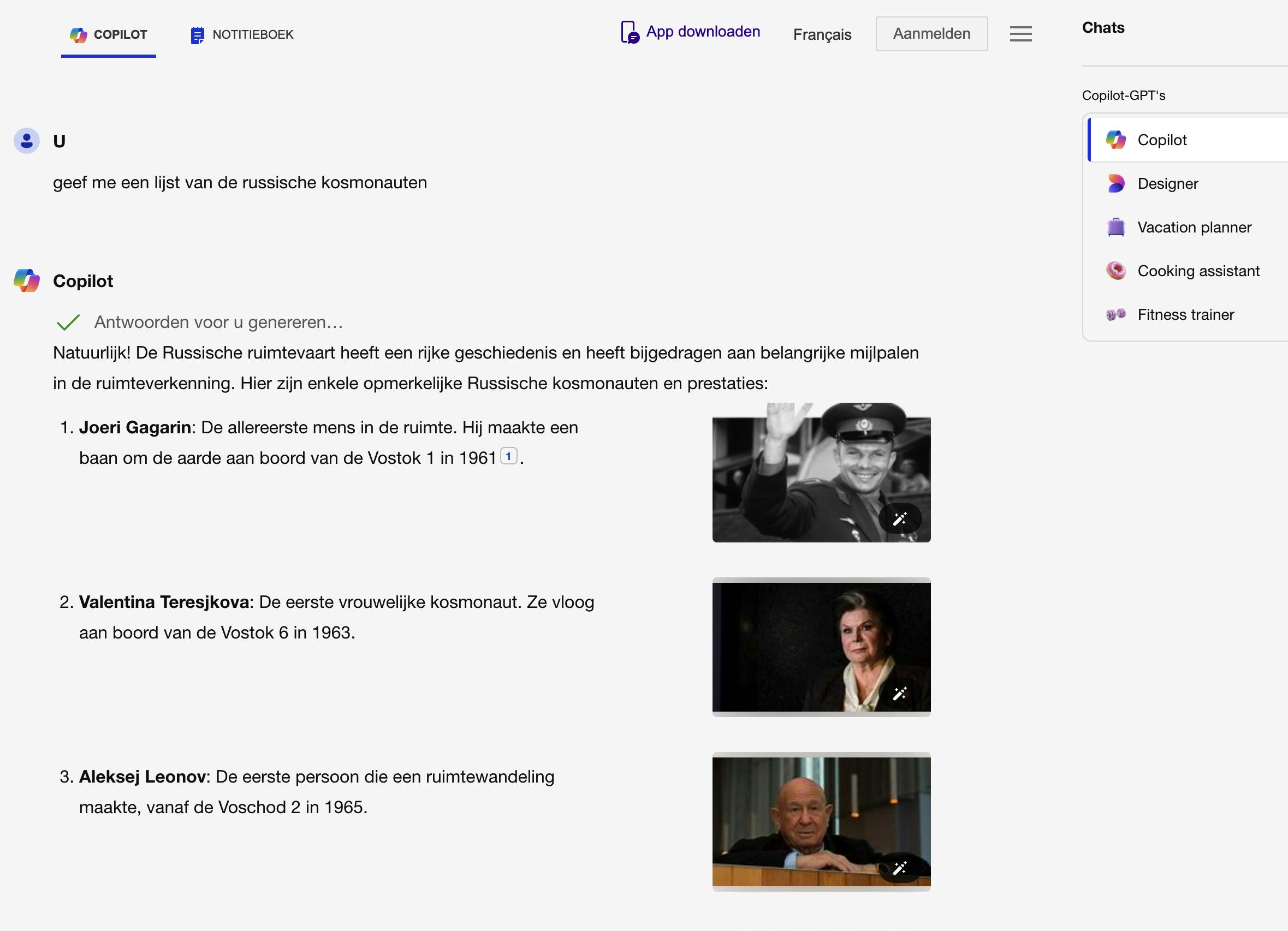 Ook op de Copilot-webpagina kun je afbeeldingen uploaden en prompts inspreken. Vanaf dezelfde webpagina spreek je Designer aan om afbeeldingen via AI samen te stellen. Hier staan ook de Copilot GPT’s. Een GPT is een Generative Pre-trained Transformer waarbij Copilot is getraind voor een specifiek doel.