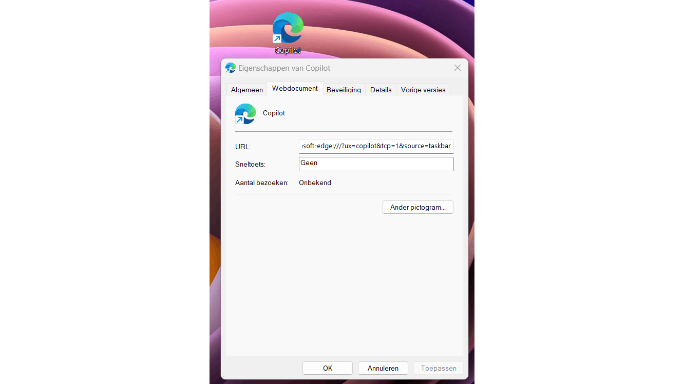 Je kunt ook een snelkoppeling maken om Copilot te starten.