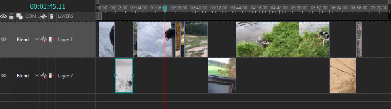 Waarschijnlijk heb je een bepaalde volgorde voor de videoclips in gedachten. Geen probleem, want je kunt de clips op de tijdlijn verplaatsen. Sleep het beoogde fragment met ingedrukte muisknop één laag omlaag. De overgebleven video’s schuif je daarna naar links of rechts. Creëer op die manier een ‘gat’ en sleep het fragment ernaartoe. Het is belangrijk dat er geen loze ruimtes op de tijdlijn achterblijven. Anders zie je namelijk zwart beeld.