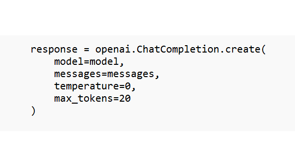 Het taalmodel produceert token na token, gebaseerd op de kans dat ze na de vorige tokens komen. Een token kan een volledig woord of een deel van een woord zijn. Voor Engelse tekst komen 100 tokens ruwweg met 75 woorden overeen. Standaard genereert ChatGPT en dus ook ons Python-script een antwoord met zoveel tokens als er nodig zijn, maar je kunt dit inperken door de parameter max_tokens toe te voegen. De aanroep van openai.ChatCompletion.create ziet er dan als volgt uit: