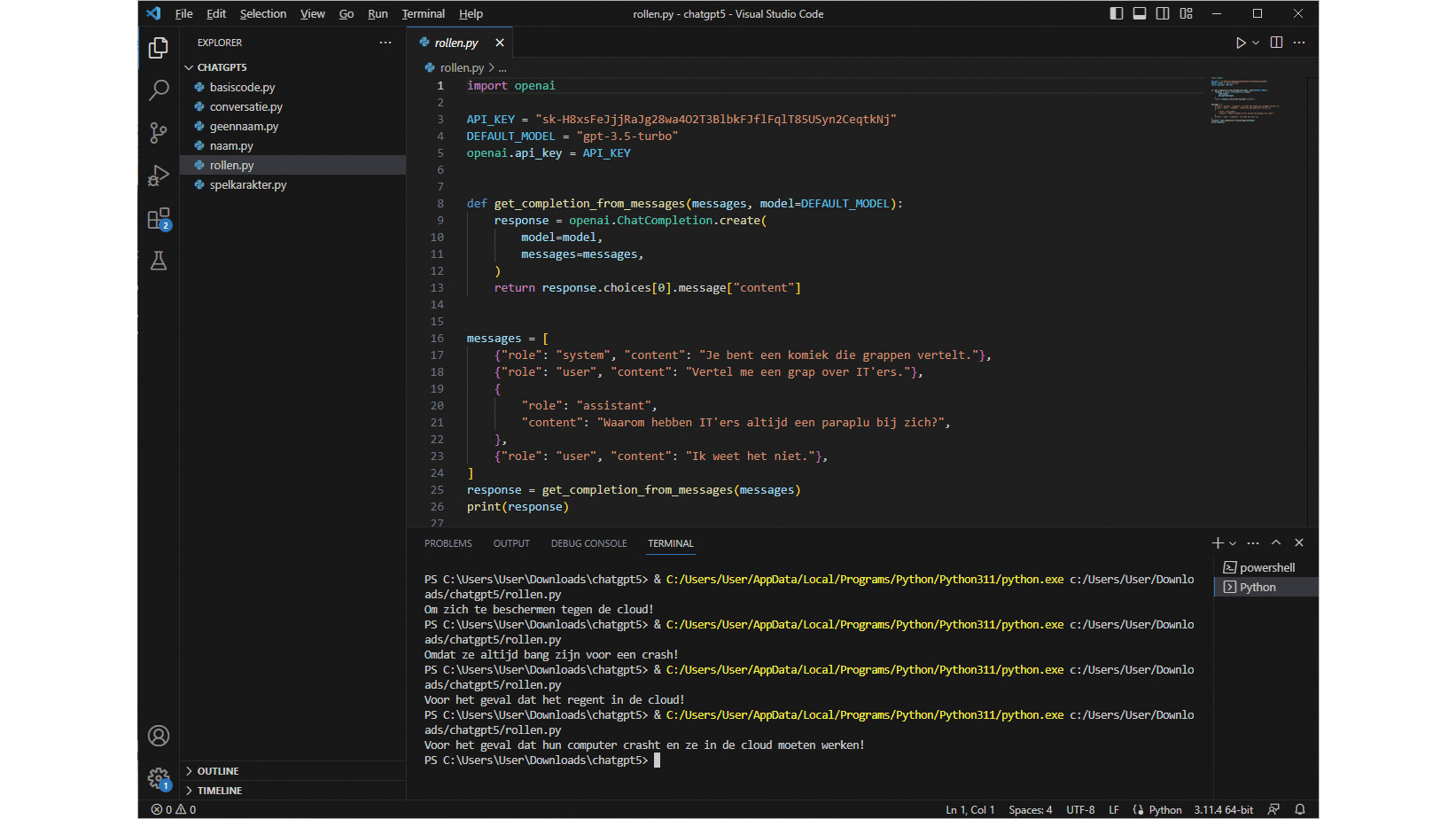 In dit laatste deel laten we zien dat je in Python een conversatie met ChatGPT kunt voeren.
