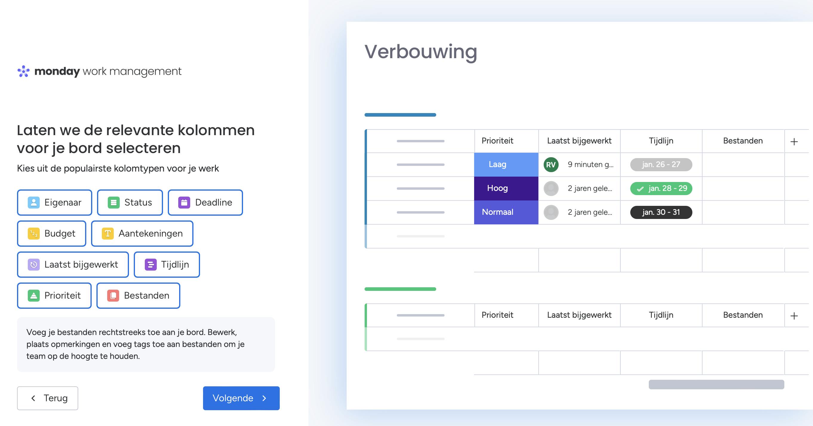 - Voeg kolommen toe om bijvoorbeeld deadlines, budgetten of prioriteiten bij te houden