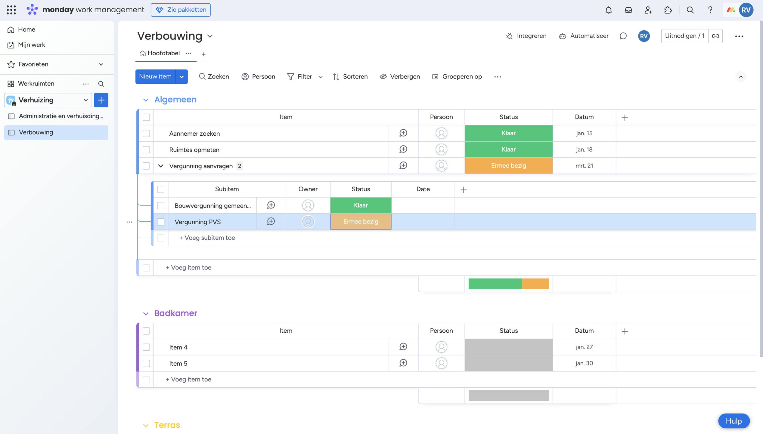 - Structureer je project in groepen, items en sub-items