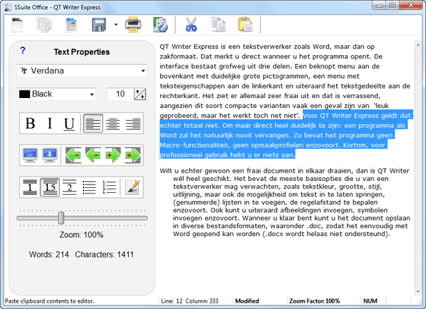 Het programma bevat de basis die nodig is om een tekst fraai vorm te geven.