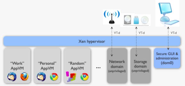 Qubes OS noemt zijn aanpak ‘beveiliging door isolatie’. Ook heel wat systeemcomponenten, zoals de subsystemen voor het netwerk en voor opslag, zijn in Qubes OS van elkaar geïsoleerd. Als een inbreker of malware er dan in slaagt om over één van die programma’s of componenten de controle te krijgen, blijft de rest van je systeem veilig.