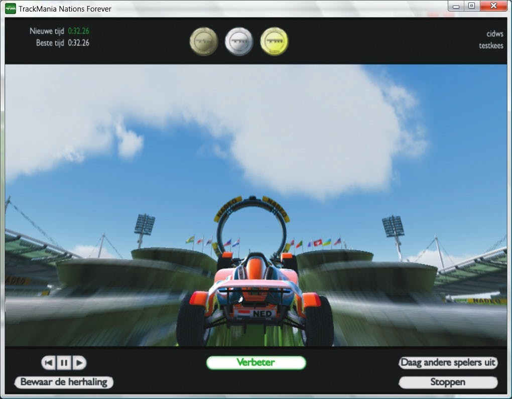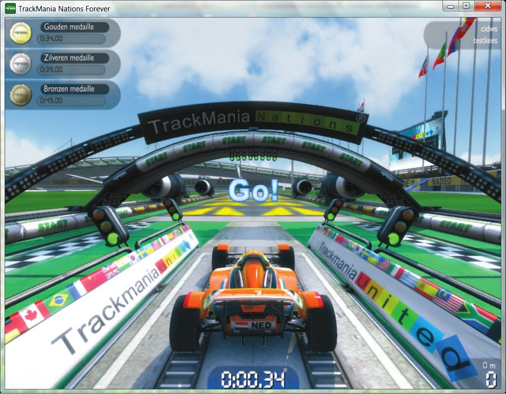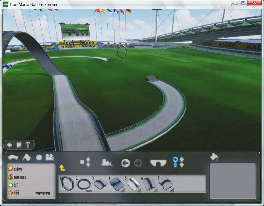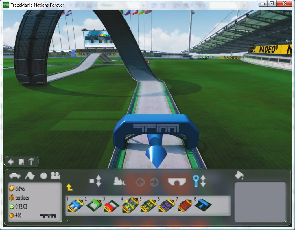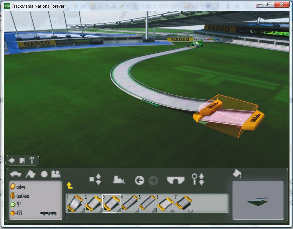 Racen op de computer is leuk, racen op je zelfgemaakte baan is nog veel leuker. Daarom een korte workshop 'bouw je eigen racebaan'. Een van de eerste racegames die er in slaagden de speler echt een gevoel van bloedstolelende snelheid te geven was Trackmania. De gratis versie, Trackmania Nations, met als enige beperking dat alle actie zich in een stadion afspeelt (de commerciële versie kende meer omgevingen) was dan ook snel razend populair. Dat geldt ook voor zijn grafisch nog fraaiere opvolger Trackmania Nations Forever. U vindt hem op www.trackmania.com. Wanneer u het 500MB-grote spel hebt gedownload en geïnstalleerd, moet u er eerst maar eens een paar uurtjes mee spelen om uw racevaardigheid via de meegeleverde stuntbanen op peil te brengen. Uiteraard gaan die banen op den duur vervelen, dan wordt het tijd om uw eigen circuit te ontwerpen.