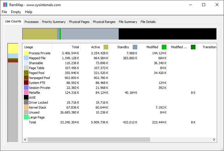 RAMMap - Een gedetailleerde blik op geheugengebruik