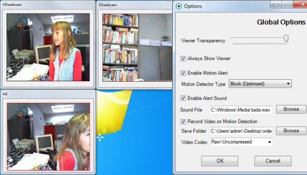 Via het paneel Global Options kun je vervolgens allerlei opties vastleggen die meteen voor alle videobronnen moeten gelden. Het is echter ook mogelijk aangepaste opties per videobron vast te leggen. Je stelt hier bijvoorbeeld in dat je de beelden altijd op je scherm wil zien, waarbij de beelden van elke camera in een eigen, te verplaatsen venstertje verschijnen.