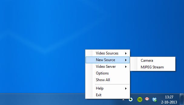Meteen na de installatie van het opensource-programma Rear View Mirror gebeurt er ogenschijnlijk niets. Er is echter een icoontje bijgekomen in het systeemvak van Windows en het is de bedoeling dat je via dit icoontje aangeeft welke videobronnen er op je systeem zijn aangesloten. Dat kan een lokale (web)camera zijn, maar net zo goed een netwerkcamera als die tenminste MJPEG-streaming ondersteunt. Alle videobronnen die je op deze manier hebt toegekend, geef je vervolgens een naam mee. De pret kan beginnen.