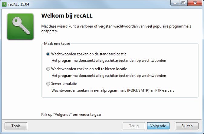 Het minste dat je van recALL kunt zeggen, is dat het gebruiksvriendelijk is. De installatie vergt maar een paar muisklikken (let op: de website kun je rechtsboven laten vertalen via Google Translate). Het opsporen van (vergeten) wachtwoorden, product- en licentiecodes hoeft niet meer inspanning te kosten dan de (standaard)optie Wachtwoorden zoeken op de standaardlocatie aan te stippen en Volgende aan te klikken.