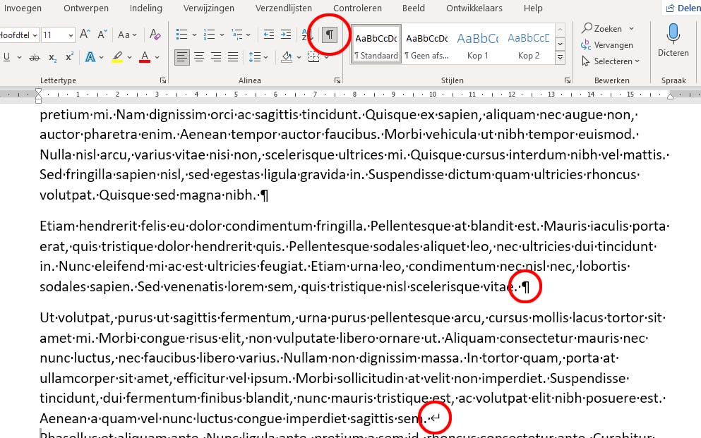 De regelafstand is de afstand tussen iedere regel, deze afstand komt dus veel meer voor dan de alinea-afstand. Een nieuwe alinea maak je door op Enter of Return te drukken. Er volgt dan een lege regel tussen de alinea’s. We noemen dit een harde Enter/Return.