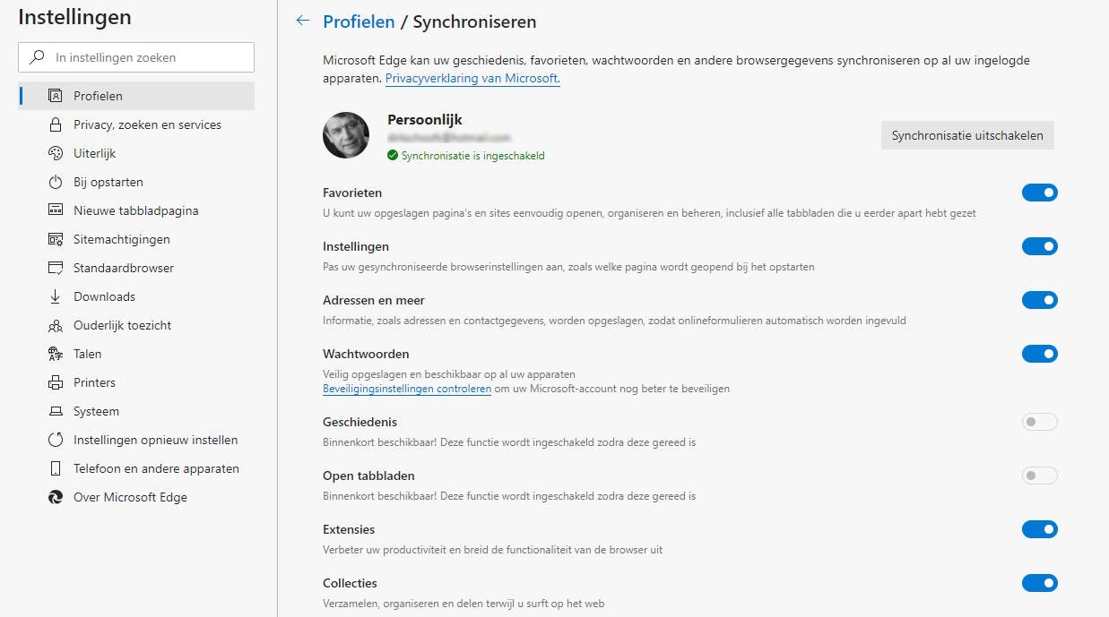 Edge synchroniseert collecties, extensies, tabbladen, wachtwoorden, adressen, instellingen en favorieten