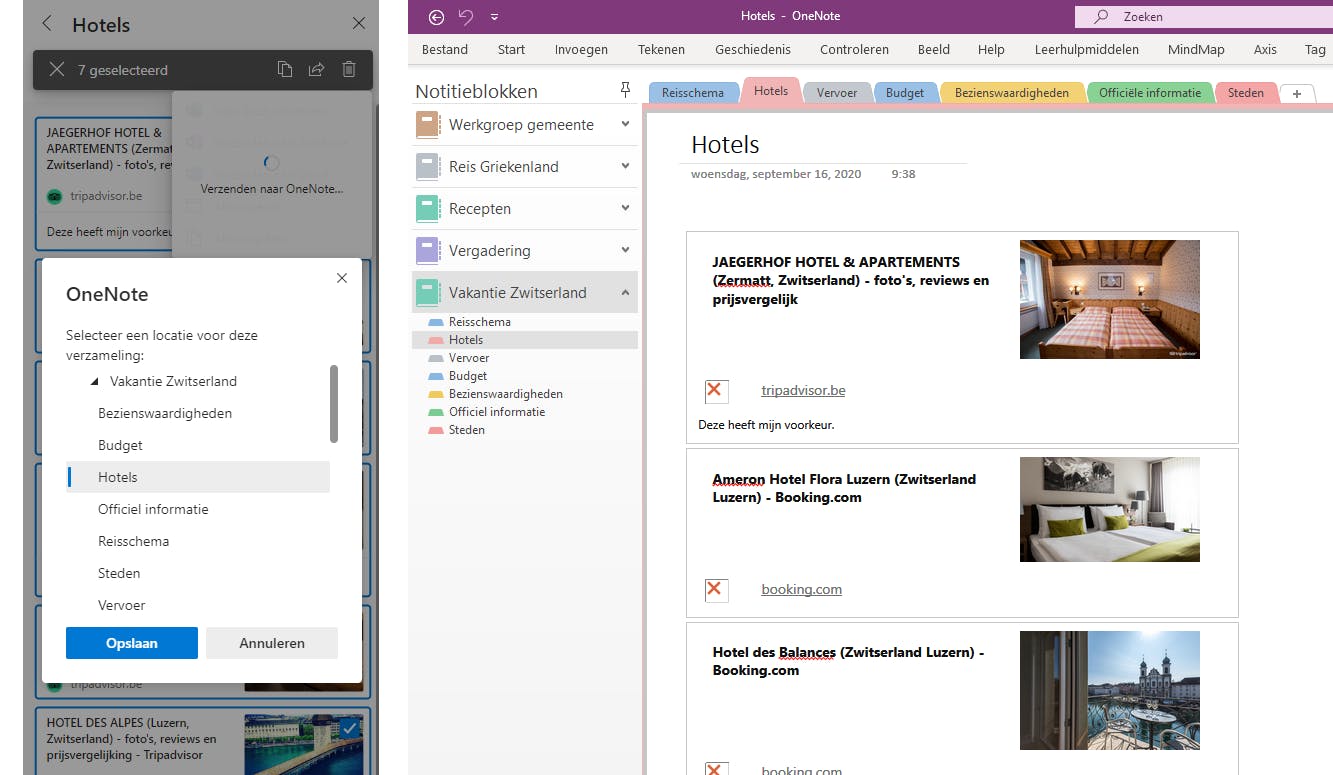 Reisplannen maken met Edge Collecties en OneNote
