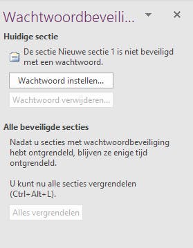 De laatste handige functie voor op reis is de sectie Noodgevallen. Je maakt een afzonderlijk sectie voor al deze belangrijke informatie, zoals een gescande kopie van je paspoort, contactinformatie en adressen voor noodgevallen, medische informatie en verzekeringsgegevens. Natuurlijk wil je deze informatie beveiligen. Je wilt immers niet dat deze gegevens toegankelijk zijn voor iedereen die je ontgrendelde telefoon in handen krijgt. Om een sectieblad te beveiligen, klik je in OneNote met de rechtermuisknop op het tabblad en kies je de opdracht Deze sectie met een wachtwoord beveiligen. Daarna stel je een wachtwoord in en bevestig je het wachtwoord nogmaals. Het is geruststellend te weten dat je vanaf dan vanaf iedere hotelcomputer bij je documenten kunt komen, zelfs als je onderweg al je apparaten zou kwijtraken.