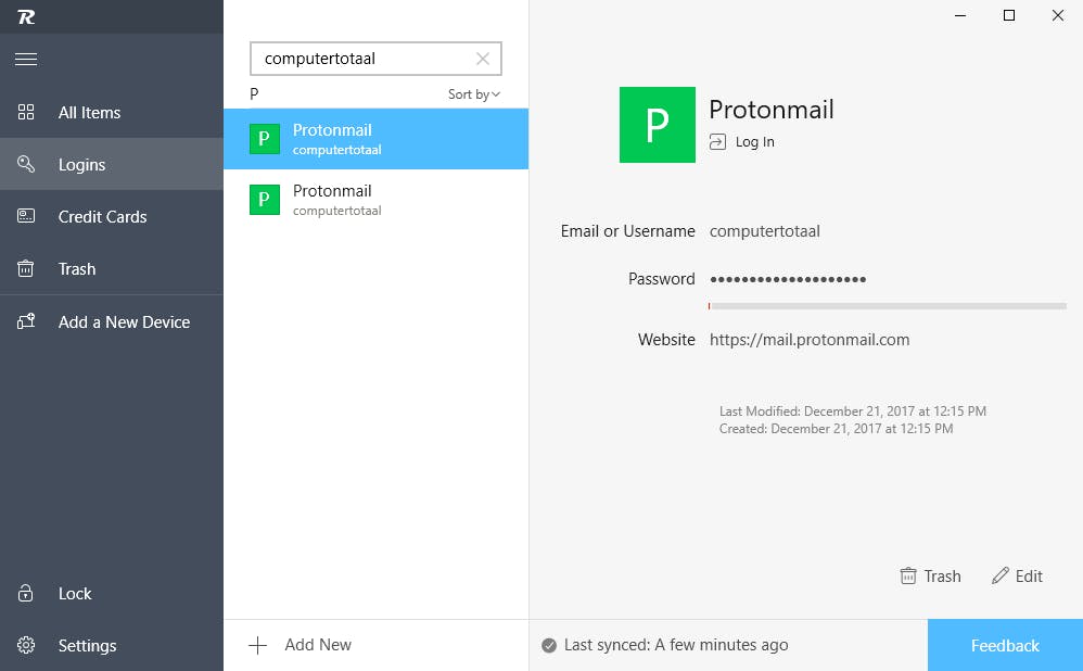 Tijdens de installatie krijg je de gelegenheid bestaande wachtwoorden te importeren – van Google, maar ook via wachtwoordmanagers als 1Password en LastPass. De toegevoegde items worden dan alfabetisch gerangschikt op naam van de bijbehorende service (zoals Apple, Bitnami, enzovoort). Naast de gebruikelijke Logins-rubriek is er ook nog het onderdeel Credit Cards. Reeds ingevulde items aanpassen is uiteraard mogelijk en zelf nieuwe items toevoegen kan eveneens. Vanuit de desktoptool hoef je een login dan maar aan te klikken en je wordt meteen op de bijhorende webpagina aangemeld.