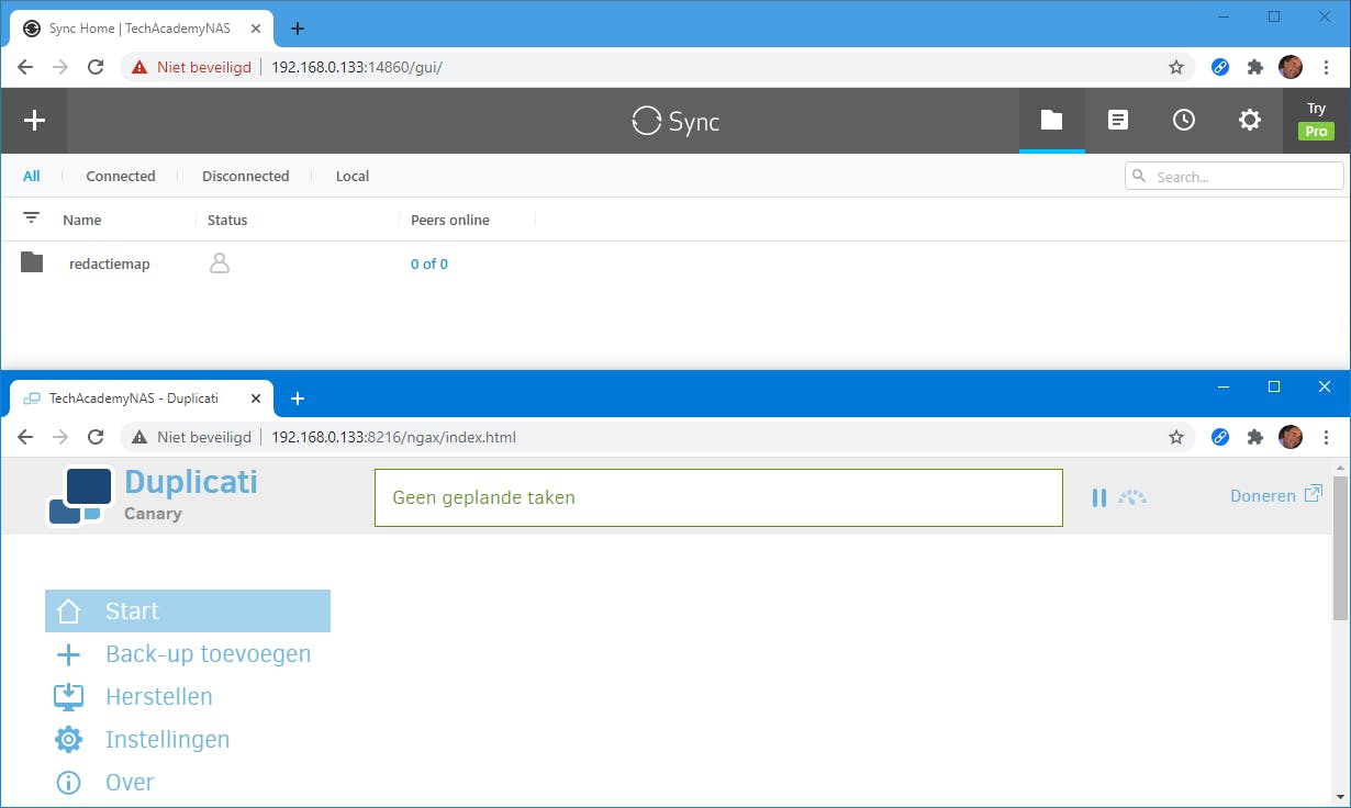Resilio (en Duplicati) op NAS