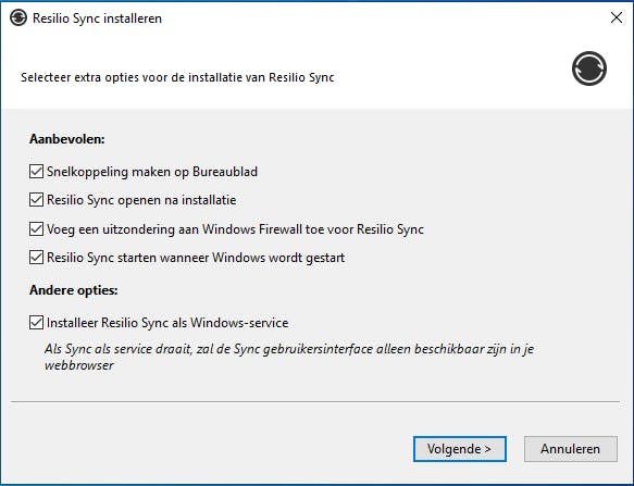 Dat gebeurt op dezelfde manier als bij je centrale pc (zie bij ‘Installatie’). Wel kun je deze keer gerust het vinkje weglaten bij Installeer Resilio Sync als Windows-service, zodat Resilio Sync zich ook vanuit een gewoon programmavenster laat benaderen op je pc.