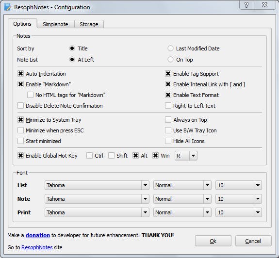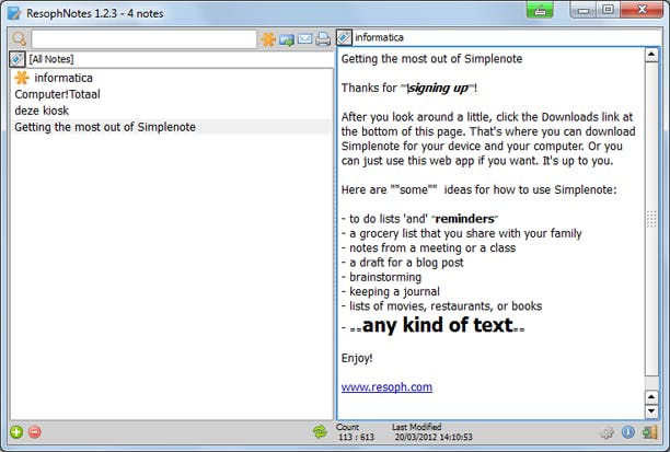 ResophNotes blijkt behoorlijk flexibel: het uitzicht en de werking bepaalt u grotendeels zelf.