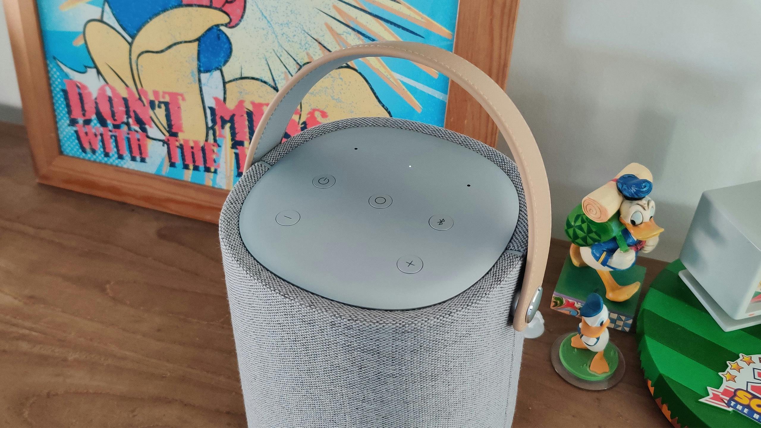Met afmetingen van 219 bij 178 bij 172 millimeter en een gewicht van bijna drie kilo, is het nou niet bepaald een compacte en lichte speaker om even ergens mee naartoe te nemen. Het is prima voor in huis hoor, zeker als je hem van de woonkamer naar de keuken verplaatst bijvoorbeeld. Maar, net zoals bij Sonos Move, hem meenemen voor tijdens een picknick raden we af. Daarvoor neemt het gevaarte te veel ruimte in beslag en vinden we hem eigenlijk ook te zwaar.