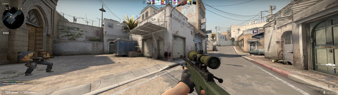 In competitieve games zoals Counterstrike: Global Offensive of Fifa kan een extreem brede monitor voordelen bieden die je tegenstander niet verwacht. In Counterstrike heb je bijvoorbeeld een bredere field of view, waardoor je een vijand kunt zien die anders misschien buiten het beeld zou vallen. In voetbalgames is het nauwelijks meer nodig om het beeld te verplaatsen, want beide keepers kunnen in één shot worden weergegeven.