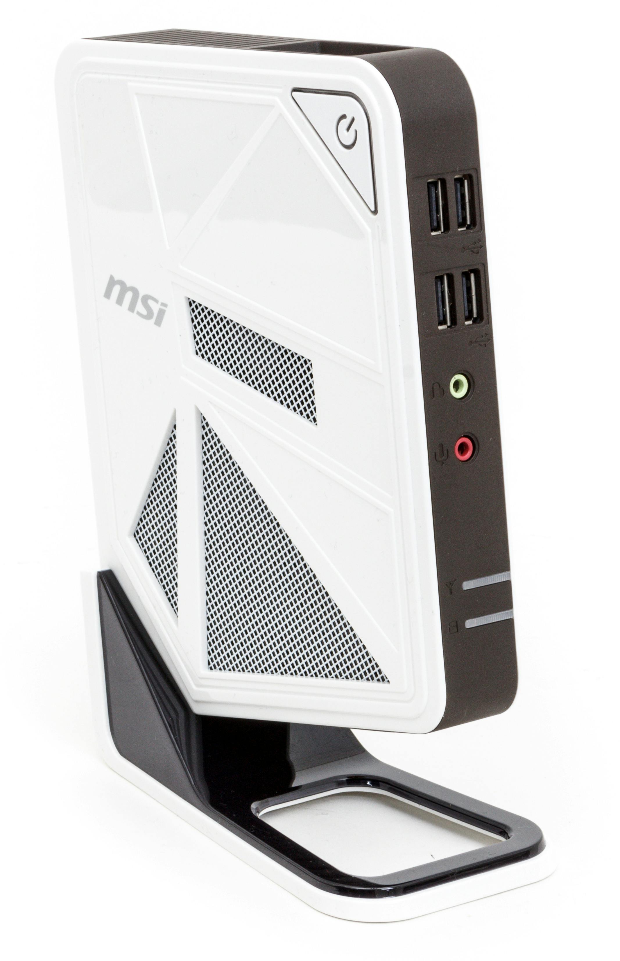 Om aan de slag te gaan hoeft u niet zelf te gaan schroeven. MSI levert hem helemaal compleet af, inclusief Windows 8.1 (met Bing), 500 GB harde schijf en 4 GB werkgeheugen. Een toetsenbord of muis zit niet in de verpakking. Het is praktisch, met vier usb-aansluitingen aan de voorkant en nog een tweetal snelle usb 3.0-ingangen aan de achterkant. Handig is ook de sd-kaartlezer aan de bovenkant van het kastje.
