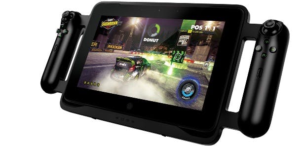 De behuizing is stevig – je hoeft niet bang te zijn dat de dunne steunen die de handgrepen aan het apparaat koppelen zullen afbreken – en het bevat motoren die verrassend bevredigende vibratiefeedback geven tijdens het spel. Het ontwerp van Razer kopieert duidelijk de gamepad van Microsoft’s Xbox 360, met twee analoge joysticks, een D-pad, vier face buttons (A, B, X, Y), en de vereiste Start en Select knoppen.
