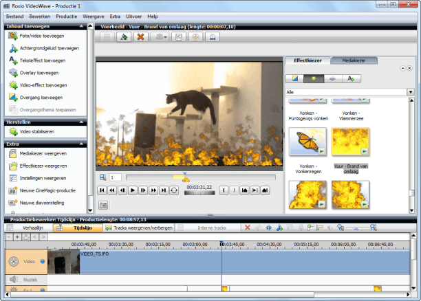 Aan de videobewerker van Roxio Creator 2012 zijn verschillende nieuwe effecten toegevoegd.