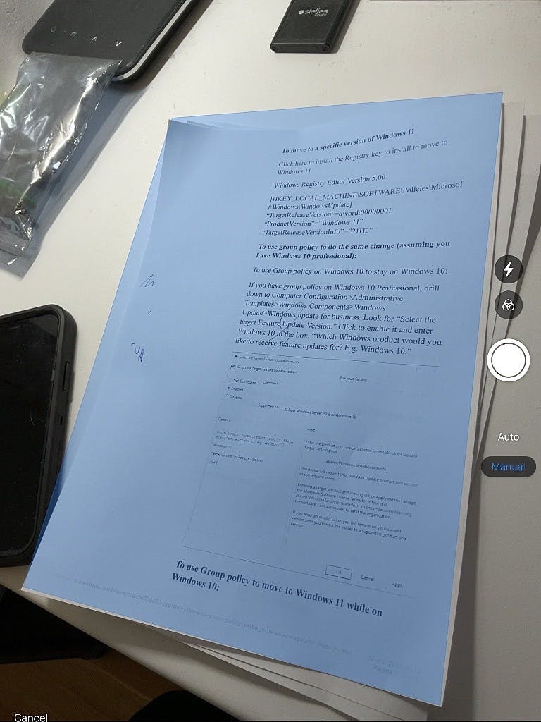 Scan Thing kan nog meer. Het is namelijk ook een documentscanner die gefotografeerde pagina’s netjes automatisch rechttrekt. Tik daarvoor op het bovenste knopje, waarna je standaard in de automatische scanmodus belandt. Dat werkt lekker snel: plaats een pagina in beeld, waarna de app hem automatisch herkent, selecteert, fotografeert en rechttrekt.