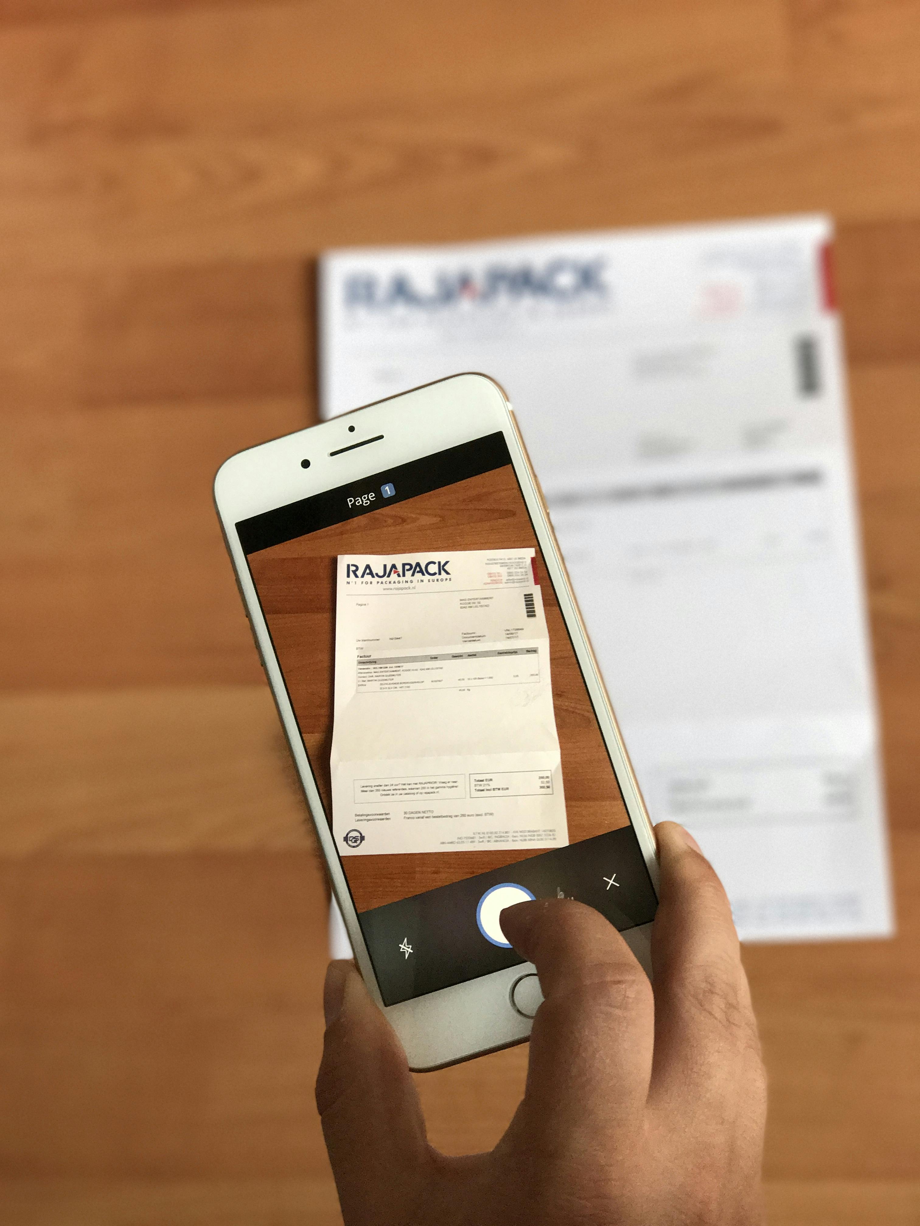 Adobe Scan is in principe je draagbare scanner. Om een document, notitie, visitekaartje of ontvangstticket in pdf-formaat op te slaan, moet je het eerst fotograferen. Dat is eenvoudig. Houd je smartphone simpelweg boven het document en probeer je toestel goed stil te houden. Op de sluiterknop tikken is niet nodig: Adobe Scan herkent het document automatisch en slaat razendsnel een afbeelding op. Op die manier kun je gemakkelijk meerdere documenten achter elkaar vastleggen. De inhoud in het blauwe vak wordt telkens opgeslagen.