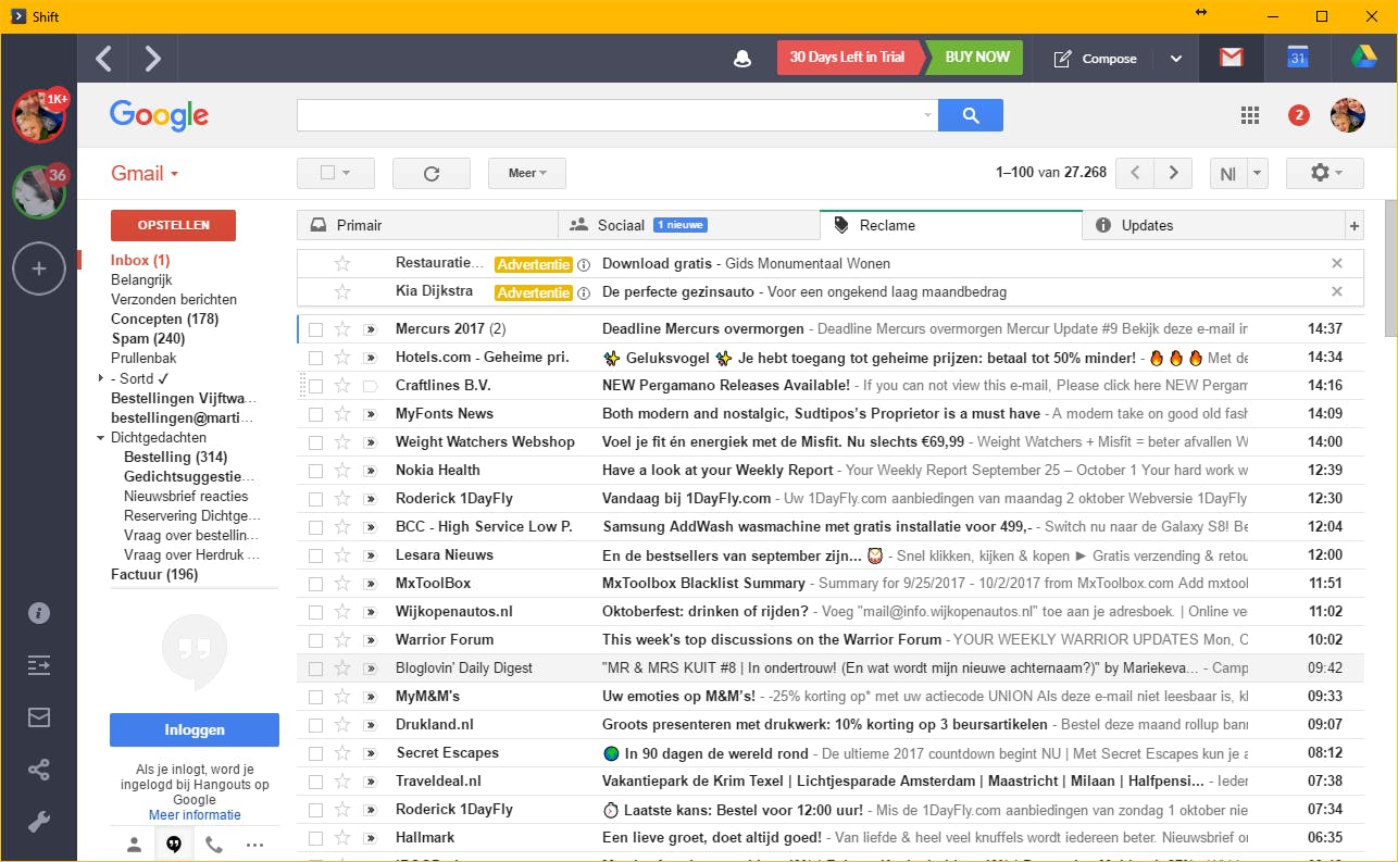 Een paar jaar geleden was het absoluut niet te doen om te werken met meer dan één Gmail-account. Inmiddels heeft Google dat proces wel iets verbeterd, maar echt eenvoudig werkt het nog altijd niet. De makers van Shift bieden daar een oplossing voor: software waarmee je probleemloos kunt schakelen tussen Gmail-accounts én accounts van andere aanbieders.