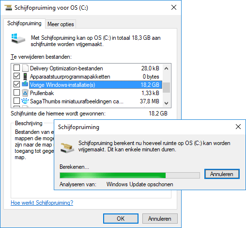 Schijfopruiming in de Windows 10 Creators Update