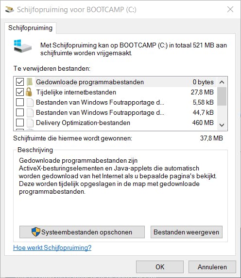 De ingebouwde tool van Windows om schijfruimte vrij te maken doet al goed zijn werk.