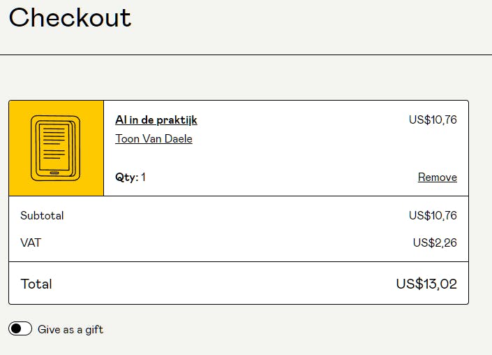 Enkele minuten na je aanmelding en upload kan men je e-book via Gumroad kopen.