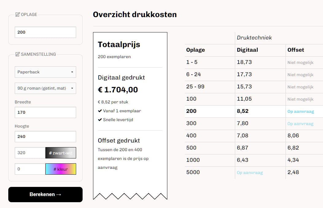 Er zijn verschillende manieren om je manuscript gedrukt en gepubliceerd te krijgen. Je kunt het laten drukken bij een traditionele drukservice, waarbij je in één keer een vaste oplage bestelt, wat bij grotere hoeveelheden voordeliger is. Of je kiest voor een (online) POD-dienst (print on demand), waar boeken pas worden gedrukt als er bestellingen binnenkomen. Hierdoor is geen voorraad nodig, wat de opstartkosten laag houdt. Bekende POD-diensten zijn BoekenGilde, Boekscout, Bookmundo, Pumbo en de meer internationaal gerichte Blurb en Lulu. De prijzen hangen onder meer af van de initiële oplage, papierkeuze en afwerkingsopties.