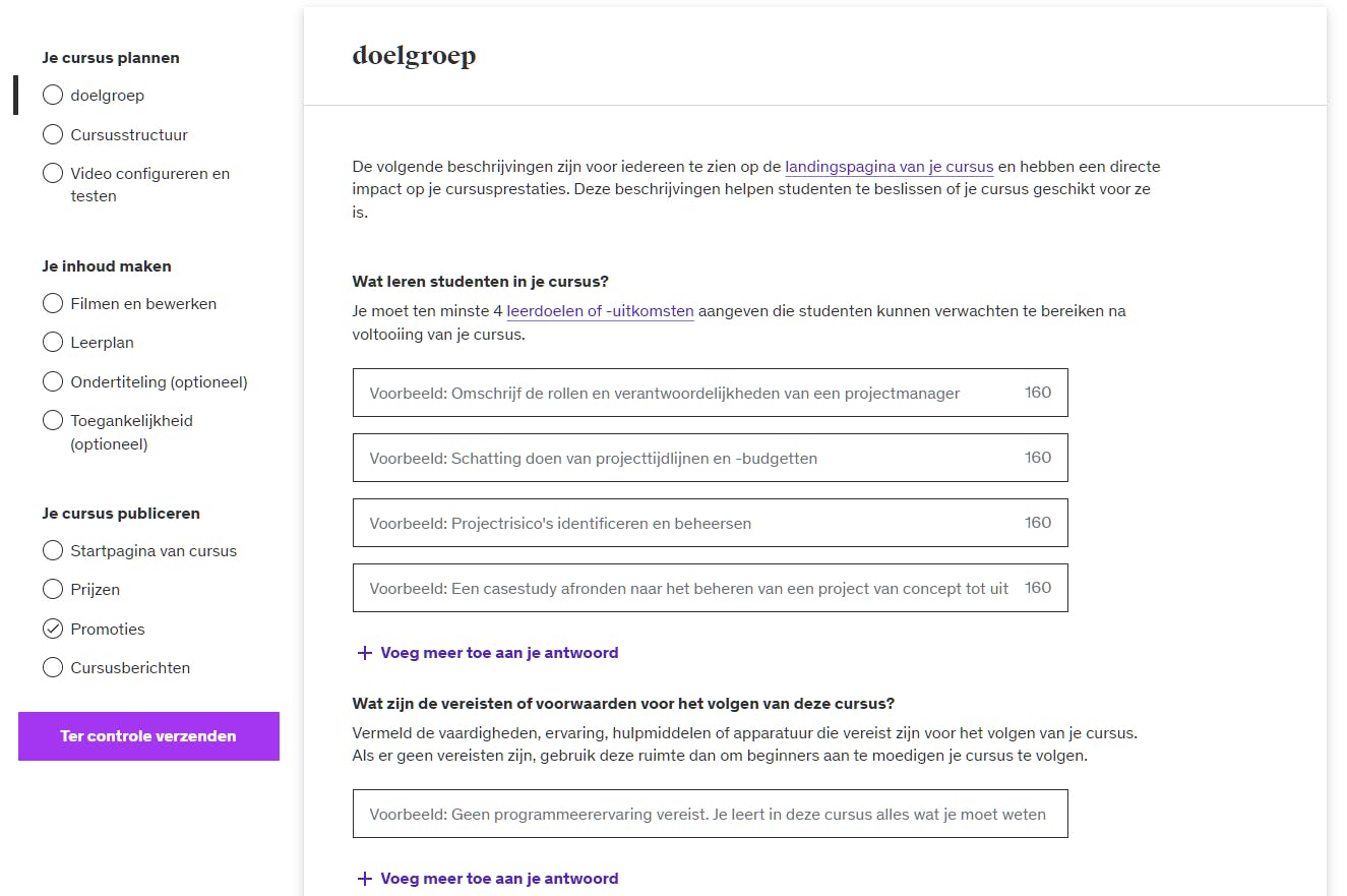 Udemy helpt je stapsgewijs bij het aanmaken en online zetten van je cursus.
