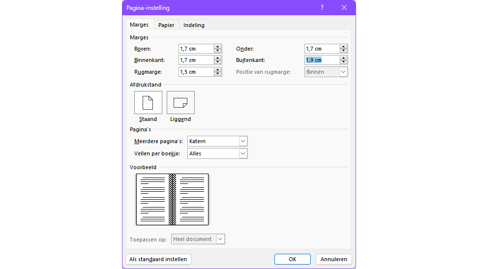 Let ook goed op de marges, eventueel met extra bindrand (hier: Word).