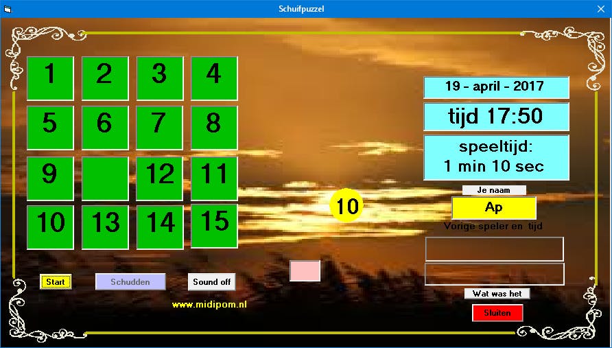 Voor lezers die zelf programma’s maken is in Voor Nop altijd ruimte. Senior-programmeur Jan Krauth verblijdde ons met zijn nieuwste speeltje dat de naam Schuifspel draagt – waarom moeilijk doen als het ook makkelijk kan! Schuifspel is de klassieke 15-puzzel die spelers al bijna anderhalve eeuw zoet houdt en door de jaren heen al door menig bedrijf als reclame-weggevertje is gebruikt. U kent het idee vast wel: in een vierkant van 4x4 blokjes staan op blokjes met een grootte van 1x1 de getallen 1 tot en met 15 en aan de speler om deze in de juiste volgorde te zetten met één leeg vakje als ‘schuifruimte’.