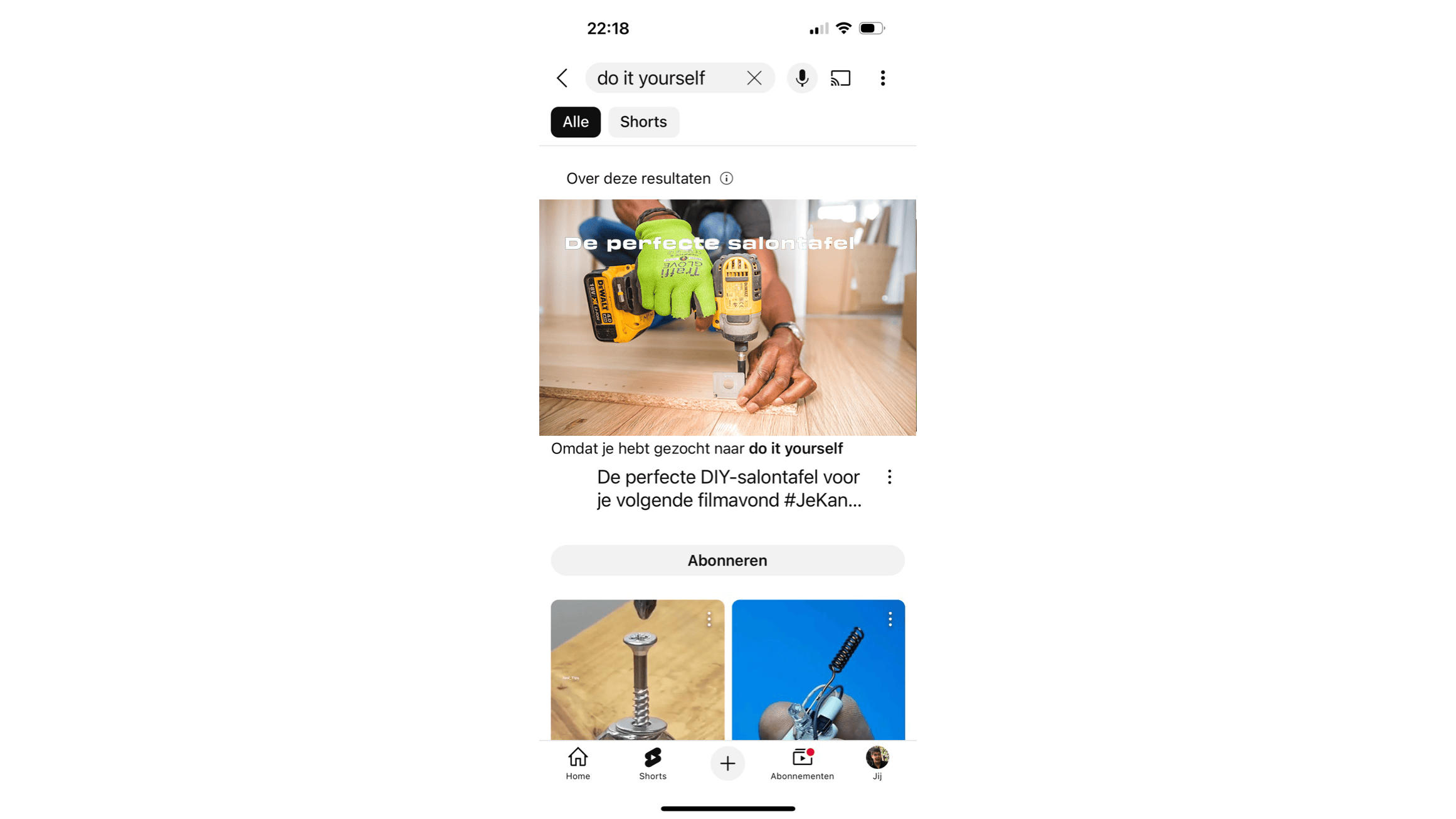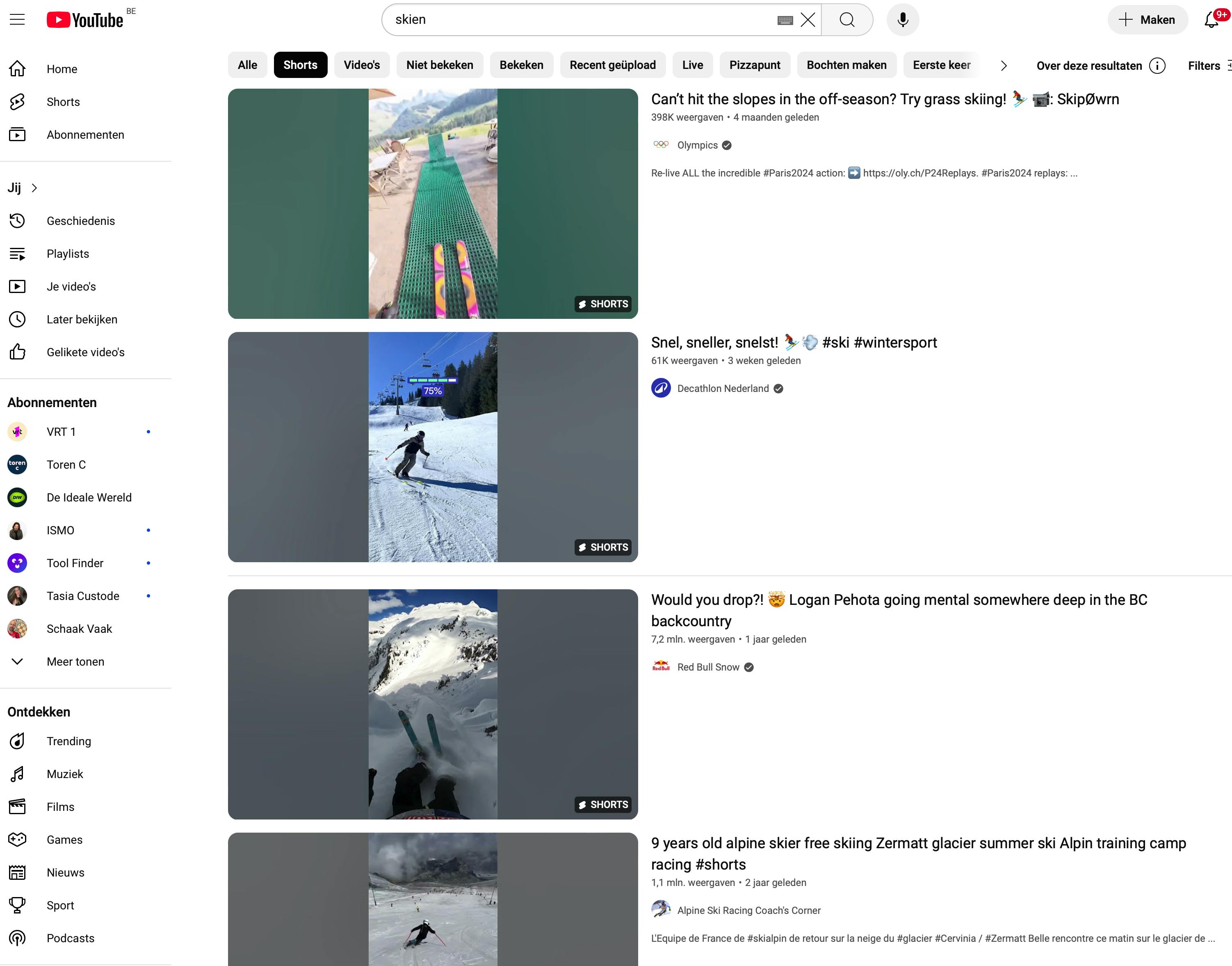 Zowel in de zoekresultaten als op de homepage van YouTube hebben Shorts een eigen tabblad.