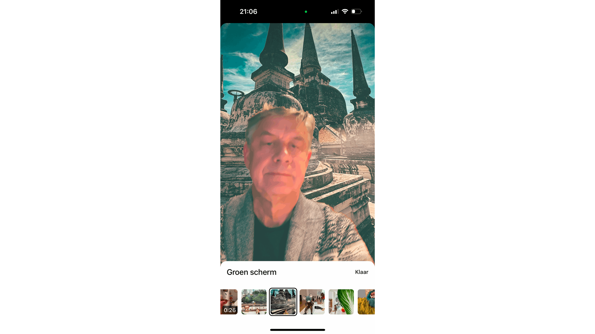 Bij de optie Groen scherm selecteer je een achtergrond uit je fotobibliotheek.
