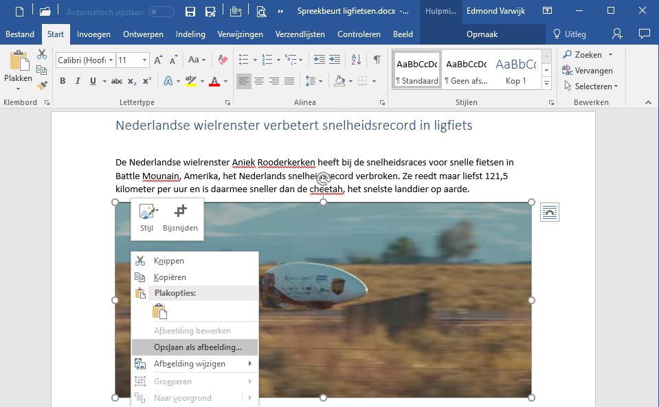 Wil je de afbeelding later ook nog kunnen gebruiken, dan kun je hem ook op je computer opslaan. Rechtsklik op de afbeelding en kies in het contextmenu voor Opslaan als afbeelding. Geef hem een naam en sla hem op de gewenste locatie op.
