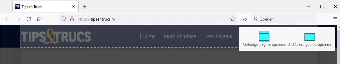 Klik op het nieuwe screenshotpictogram en kies de optie Volledige pagina opslaan. Hierdoor verschijnt er een voorvertoning van de volledige pagina die je ergens op de pc kunt bewaren.