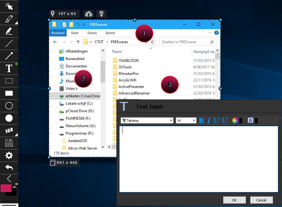 Wil je de schermafbeelding eerst nog aanpassen, dan kan dat. Met de muis kun je nog het afgebakende gebied verplaatsen of schalen en er staat ook een gereedschapskist ter beschikking van waaruit je allerlei annotaties kunt toevoegen. Een markeerstift ontbreekt daarin niet, evenals een tool om genummerde knoppen toe te voegen.