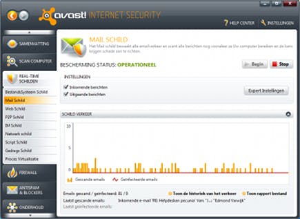 De mailscanner is een van de negen ‘schilden’ van avast! Internet Security 5.0.