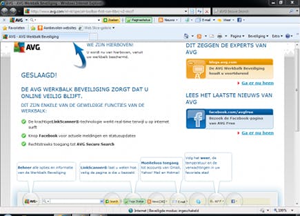 Desgewenst installeert AVG een browserbalk en een eigen veilige zoekmachine.