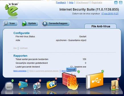 Veel onderdelen van eScan blijken na een standaardinstallatie uitgeschakeld.